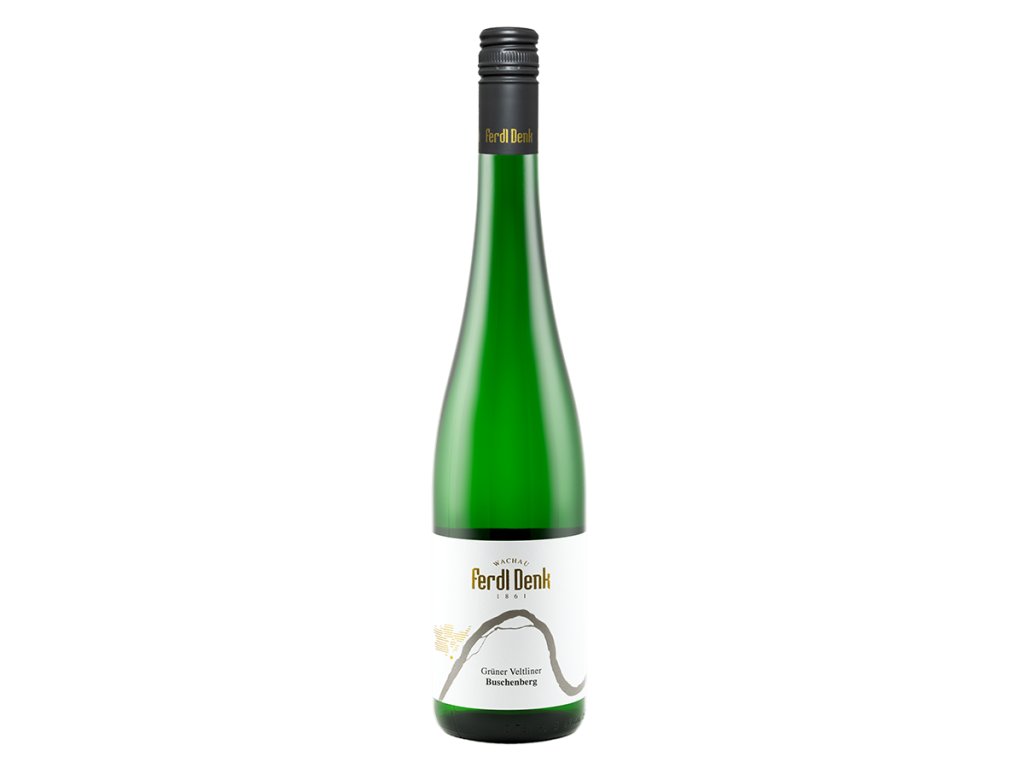 Grüner Veltliner Buschenberg, Weingut Ferdl Denk, Wachau je suché bílé víno z jedné z charakteristických tratí Wachau s kamenitým podložím, které propisuje výraznou mineralitu. Ve vůni nabízí zelené jablko, citrusovou kůru, jemné bylinky a lehký pepřový tón, v chuti je suché, šťavnaté, s výraznější kyselinou, pevnější strukturou a delším minerálním závěrem. Styl vína je lehčí až středně plný, velmi dobře pitelný a typický pro tradiční produkci Wachau.